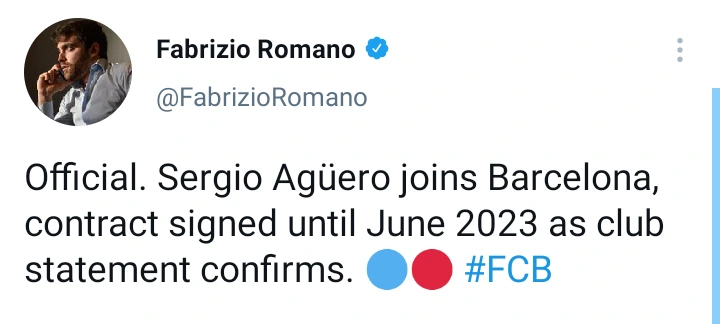 Simply put, Barcelona have signed Sergio Agüero, as their first player of the summer transfer. And, he will be with the Blaugranas family for 2 years.