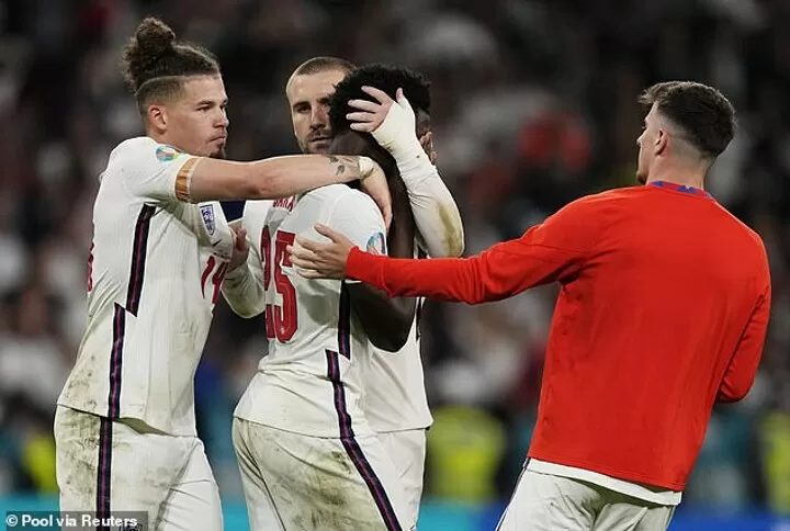 During the Euro 2020 final, 78 per cent of the abuse was racist, with 23 per cent of that also containing a homophobic element. The majority of this was primarily targeted at the three black English players who missed penalties, the report says.