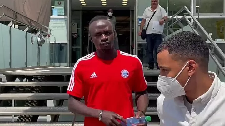 Later on, Mane emerged from the medical facility wearing Bayern Munich training gear and posed for pictures with fans outside.