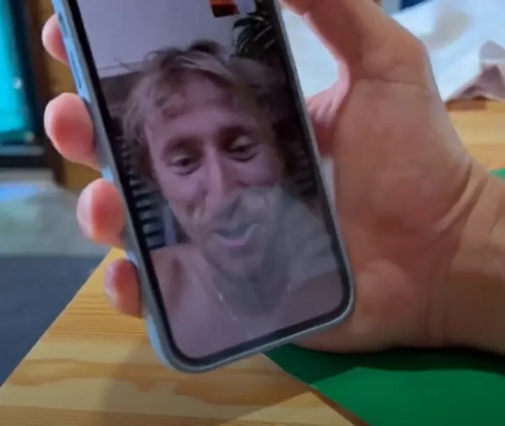 A shy Ilya can be seen beaming from ear to ear during the call before covering his mouth in astonishment at seeing the Croatia star.