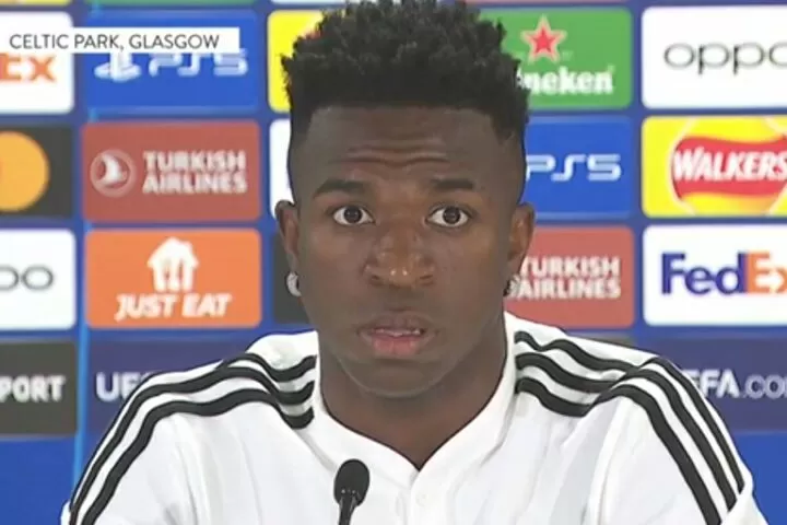 Vinicius Junior appeared at the press conference ahead of Real Madrid’s Champions League 2022/23 opener against Celtic.