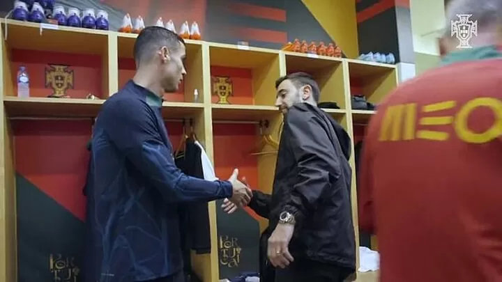 Bruno Fernandes has denied being angry at Cristiano Ronaldo despite footage from Portugal’s pre-World Cup training camp appearing to show him giving the controversial forward a cold greeting.