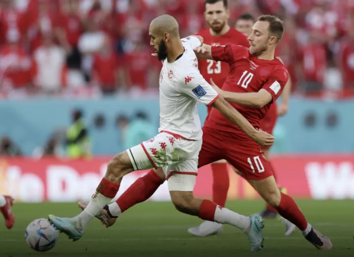 The Danes, semi-finalists at the European Championships, saw their World Cup begin in stop-start fashion as Eriksen was denied by goalkeeper Aymen Dahmen while substitute Andreas Cornelius hit the post from a yard with the best chance of the match.