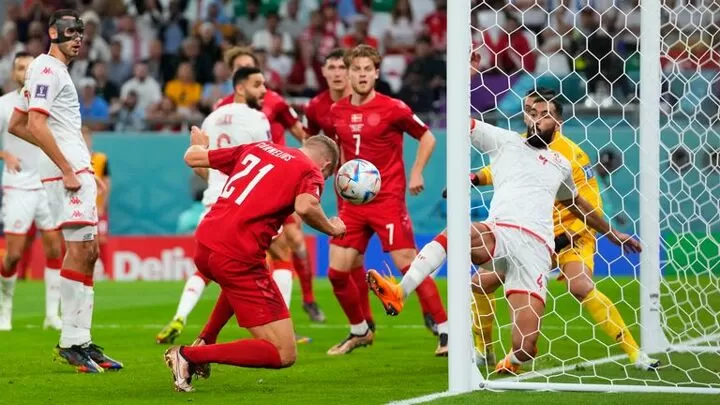 Denmark had a goal ruled out themselves when Andreas Skov Olsen found the bottom corner 10 minutes after the break and in injury time referee Cesar Ramos didn’t award a penalty after checking the VAR monitor following a potential handball from Tunisia’s Yassine Meriah.