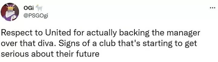 Another added: ‘Respect to United for actually backing the manager over that diva. Signs of a club that’s starting to get serious about their future’.