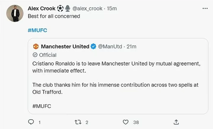 Mixed social media reaction showed most United fans were happy to see the ugly situation resolved, while others labelled his departure as a ‘sad end’ to what has been a magical Manchester United career for the Portugal star.