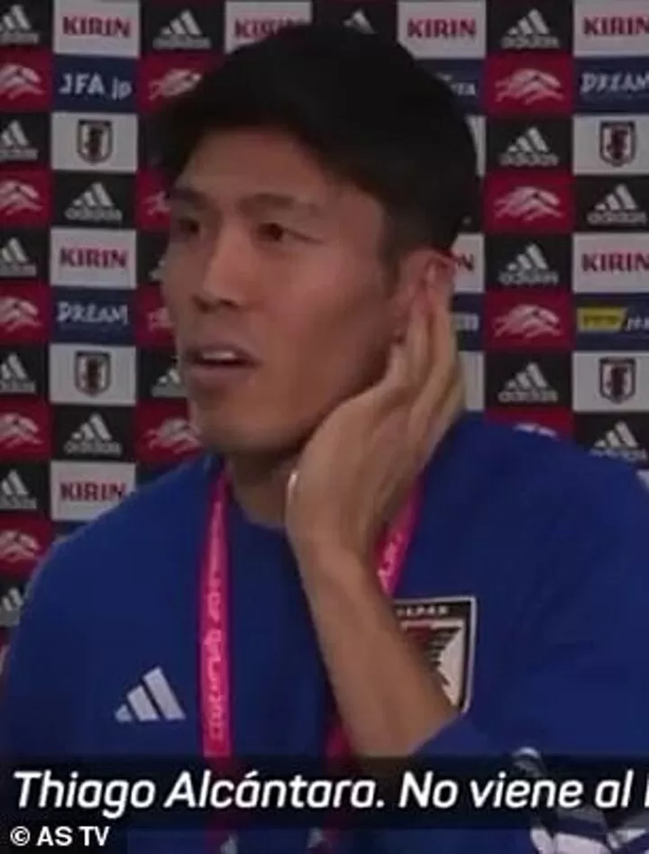 The 24-year-old is then told that Thiago was not called up by Spain boss Luis Enrique and was left at home for the tournament, prompting Tomiyasu’s stunned reaction.