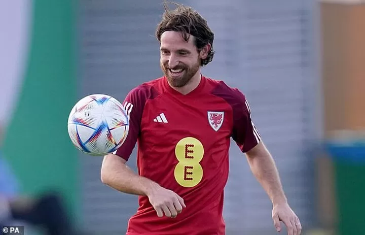 The 32-year-old could be seen joking around with team-mates Ben Davies and Gareth Bale as the squad prepared for the next group game against Iran.