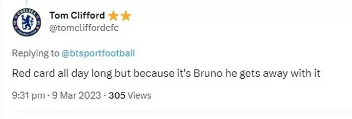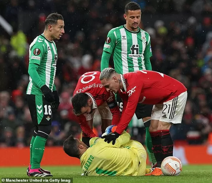 The Manchester United star was only booked after a VAR check as he appeared to turn his foot away from Bravo before making contact with the former Barcelona man.