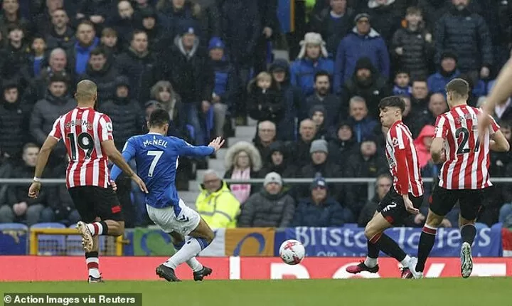 When the ball arrived via Alex Iwobi to Abdoulaye Doucoure centrally, he released McNeil who had time to pick his spot despite the attentions of Aaron Hickey and bent a left-foot finish beyond goalkeeper David Raya.