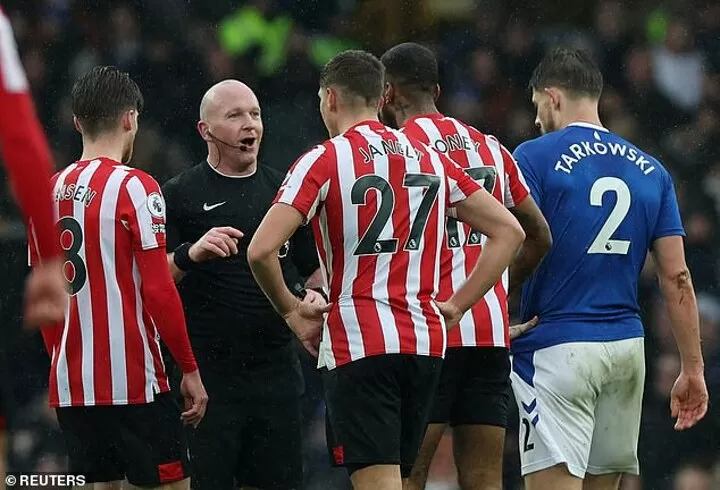 Everton’s celebrations for a second goal were cut short after 43 minutes once Gray had wheeled away in celebration.