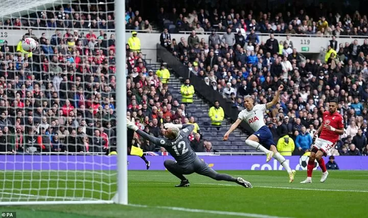 Richarlison thought his fortune had changed when he collected a clipped pass from Oliver Skipp and slammed it past Forest ‘keeper Navas. He wheeled away in celebration with a finger to his lips. Then the VAR intervened and, after a wait of more than two minutes, ruled the goal out for offside.