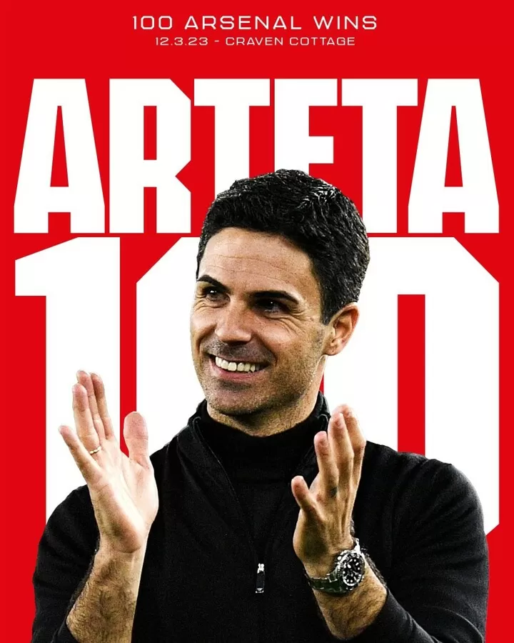 This is Arsenal’s 100th win under Mikel Arteta, as showed on the official poster tweeted by Arsenal FC.
