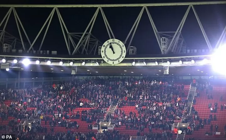 An image was posted on social media of jubilant Arsenal players and staff celebrating along with the clock, a replica of the one that is in place in the Clock End at Emirates Stadium.
